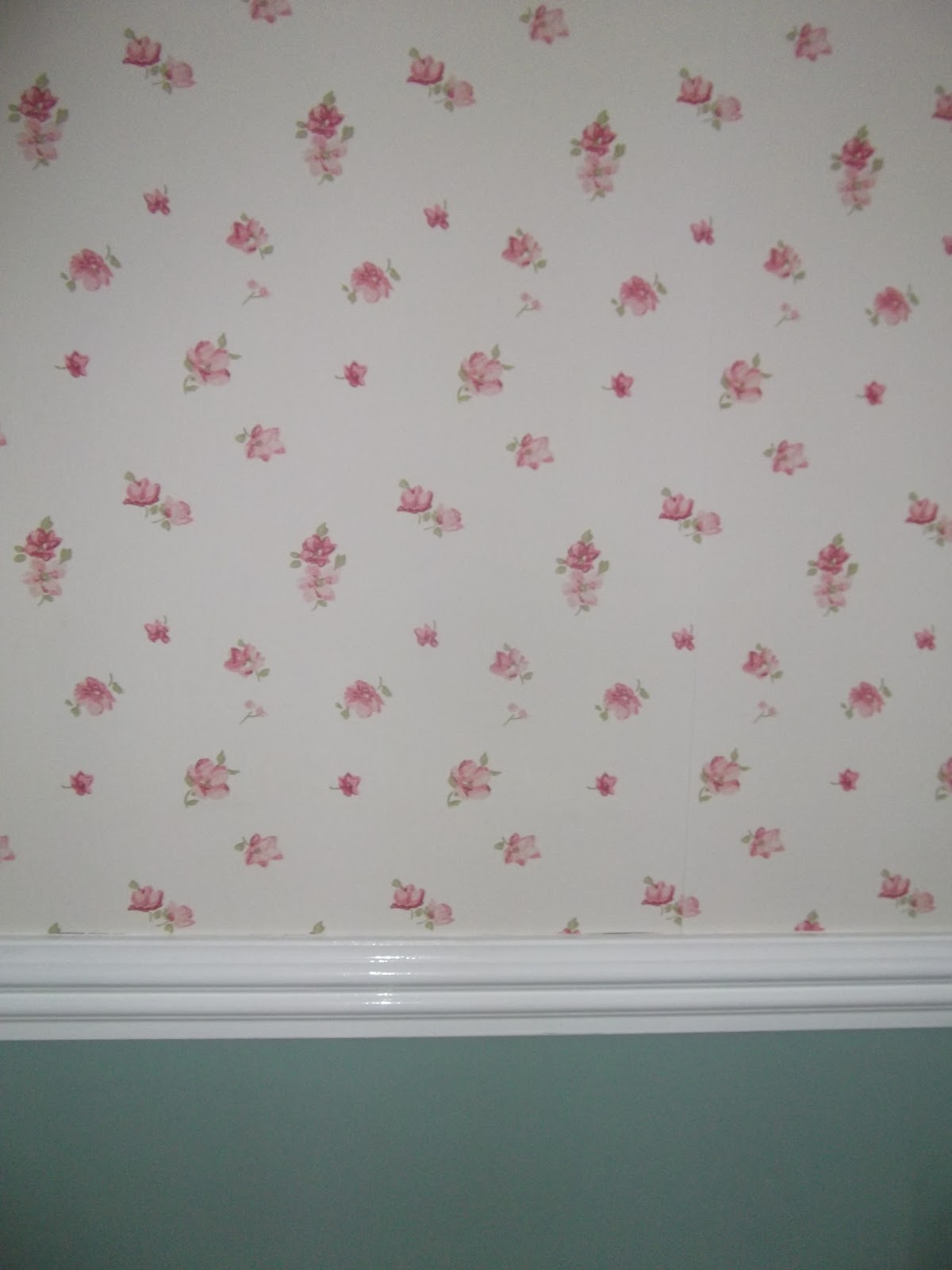 DH has just finished putting the wallpaper on the back wall. Painted the bottom half too.